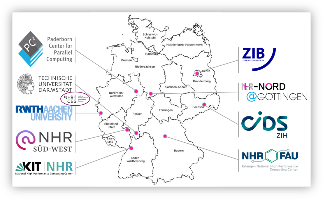 The NHR Alliance (National High Performance Computing Alliance) is a nationwide network that consolidates the HPC resources and expertise of German universities. It provides free access to advanced computing infrastructure, as well as tailored support and training for researchers across a wide range of disciplines. Beyond offering computational resources, the alliance focuses on enhancing the efficiency, usability, and application of scientific computing through ongoing research and development. With a strong emphasis on education, the NHR Alliance also supports the next generation of HPC experts through its dedicated graduate school for national and international young researchers.